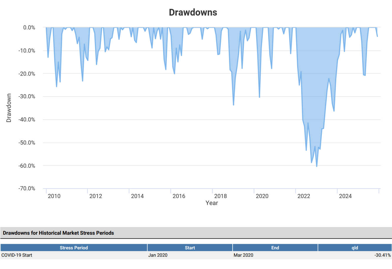 가장 뼈아픈 데이터는 바로 MDD(Maximum Drawdown)입니다. 아래 그래프를 보시죠.