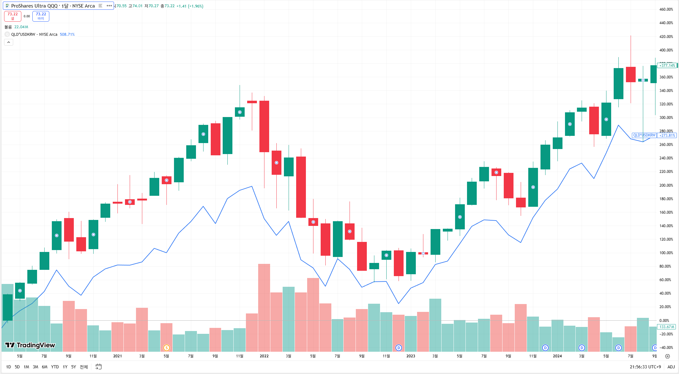 • 종목: TIGER 미국나스닥100레버리지 (일명 K-QLD, 나스닥 2배)